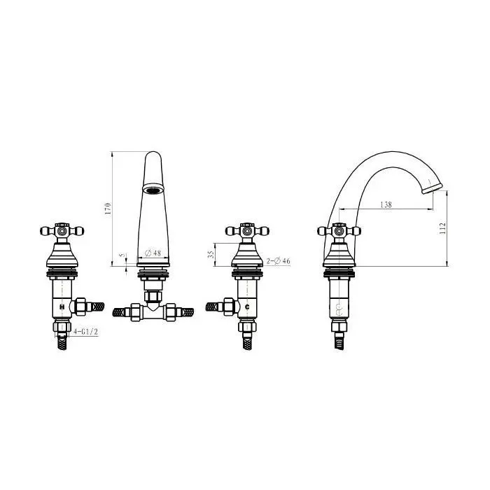 Смеситель для умывальника на 3 отверстия Boheme ROYAL CRYSTAL 317-Royal/CRST black